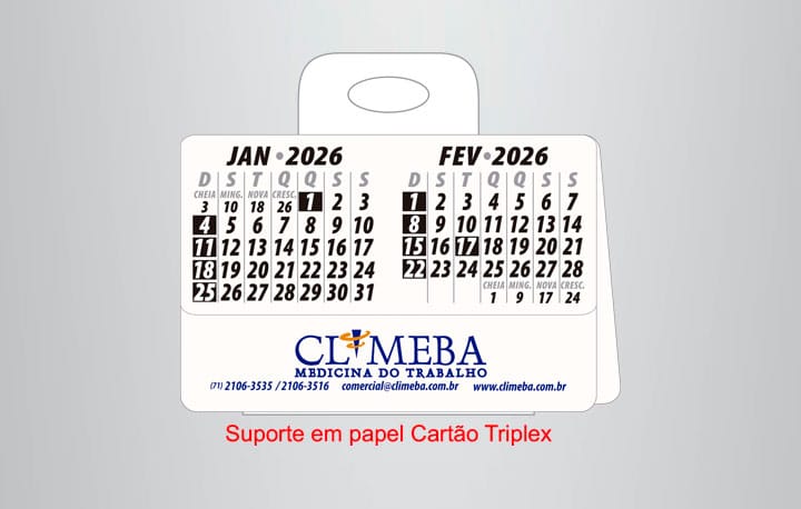 • Calendário com desenho exclusivo, sem uso de grampos e molas.